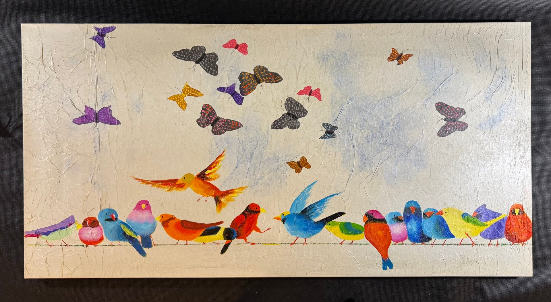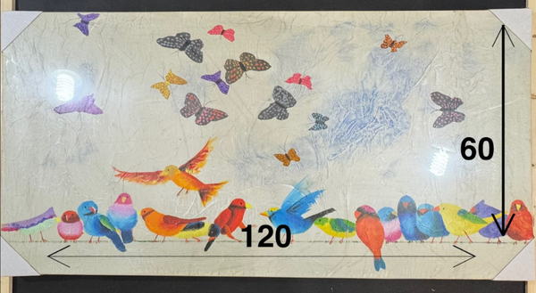Tavlan är spänd över en 3,5 cm tjock ram och kan hängas direkt på väggen.